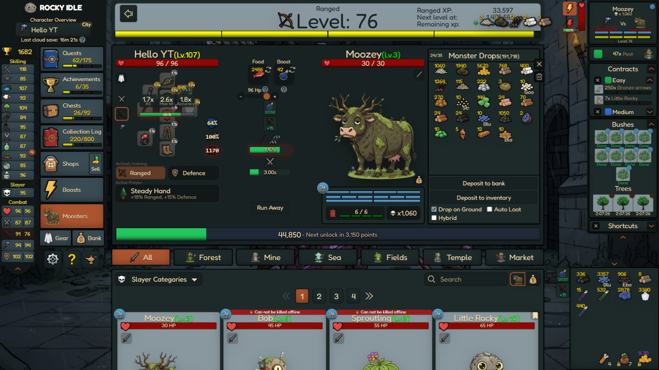 Rocky Idle — это инкрементальная игра для одного игрока. Её суть проста: ты методично заполняешь журнал коллекций.