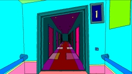 Вместо этого раздается грохот, свет меркнет. Когда он возвращается, вы видите, что вас тут уже пятеро. Незнакомцы. А сам лифт и всё вокруг выглядит так, будто нарисовано в древней программе для черчения. Нет теней, только ломаные линии и плоские цвета. Как тревожный сон.