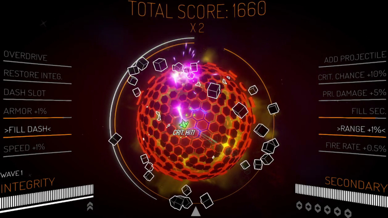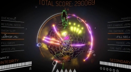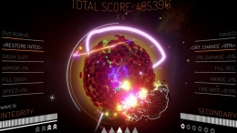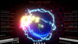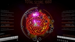 Врагов становится больше с каждой минутой. Маневрировать нужно чётко, потому что пространства мало, а снарядов много. К счастью, неоновый стиль помогает не потеряться в этом хаосе.